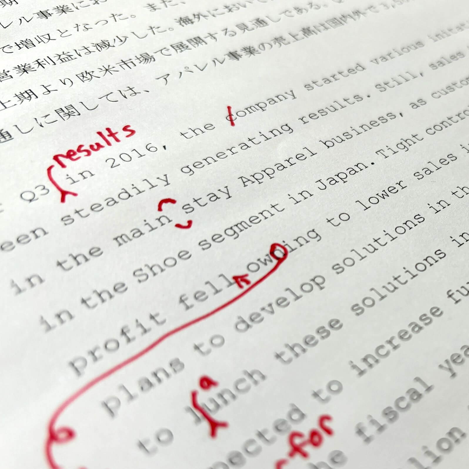 金融、テクノロジー、人工衛星・宇宙開発、自動車、観光・文化、マーケティング、医療、行政、法律を得意とする日英・校正専門の翻訳会社